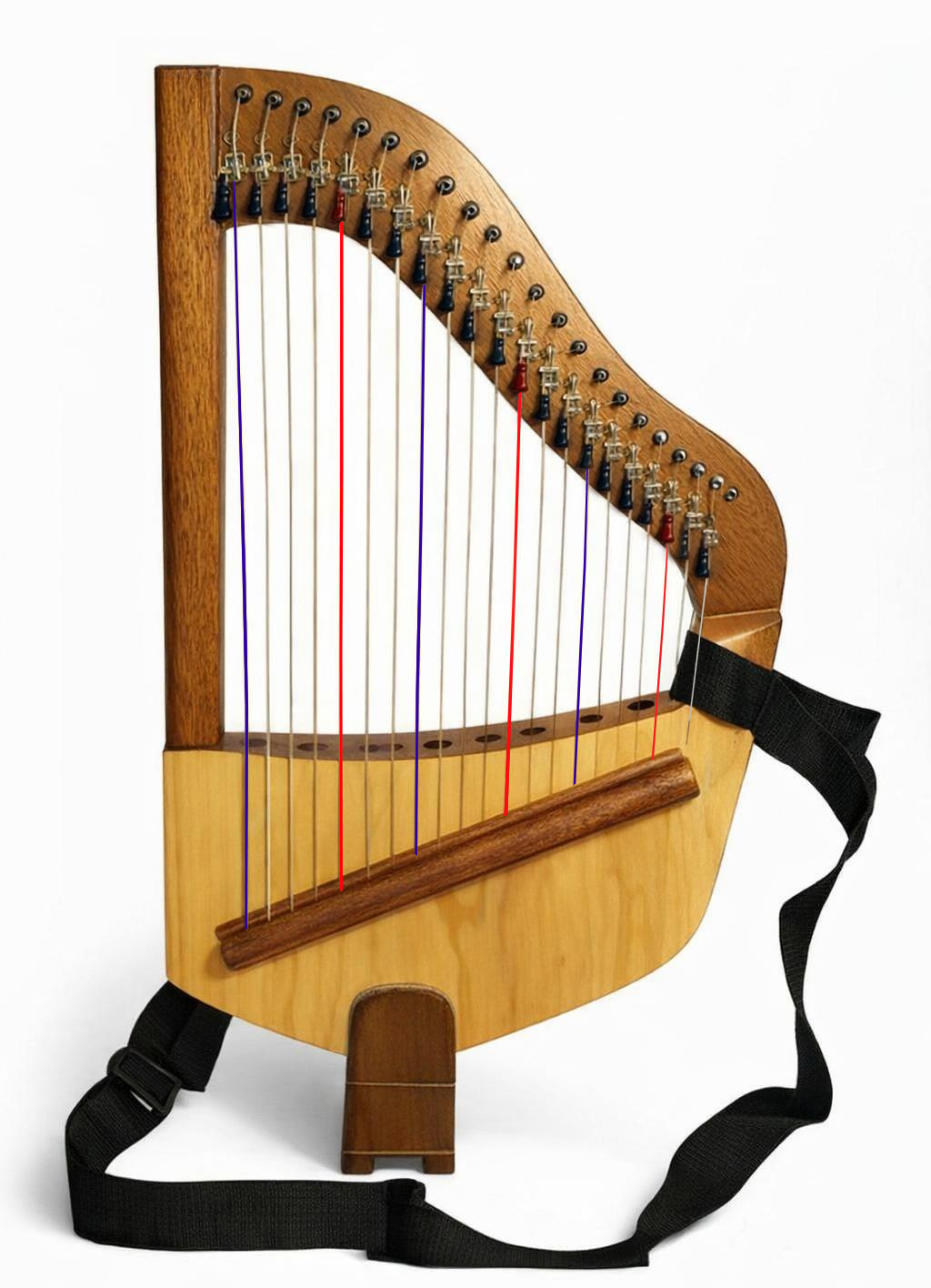 New! 22 string harp/lyre which is fully levered and is an excellent choice if you would like the extended range that a larger harp offers with the feel and portability of a lyre.